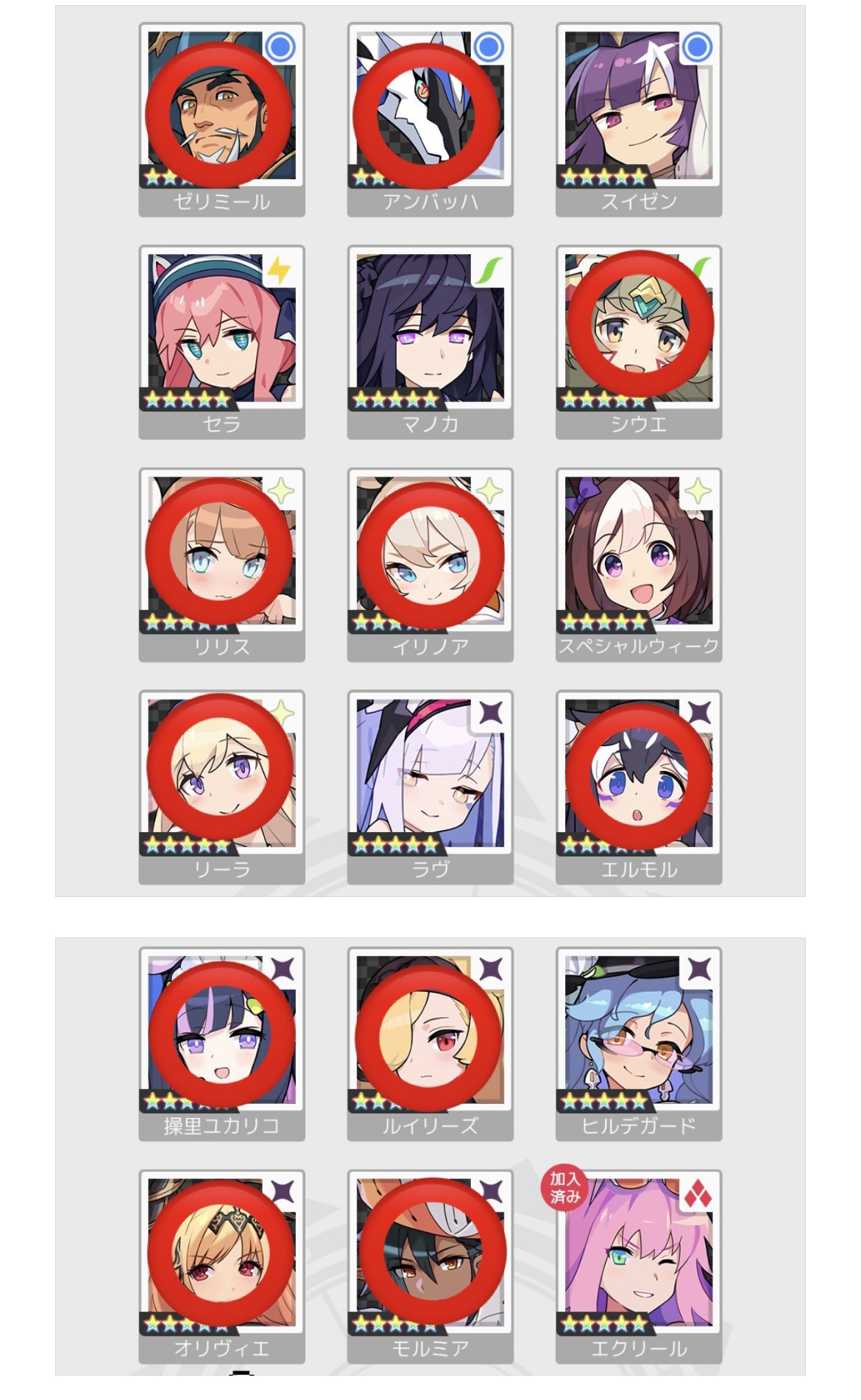 確定: エステルリエル(1.5周年)、ビューシィ
