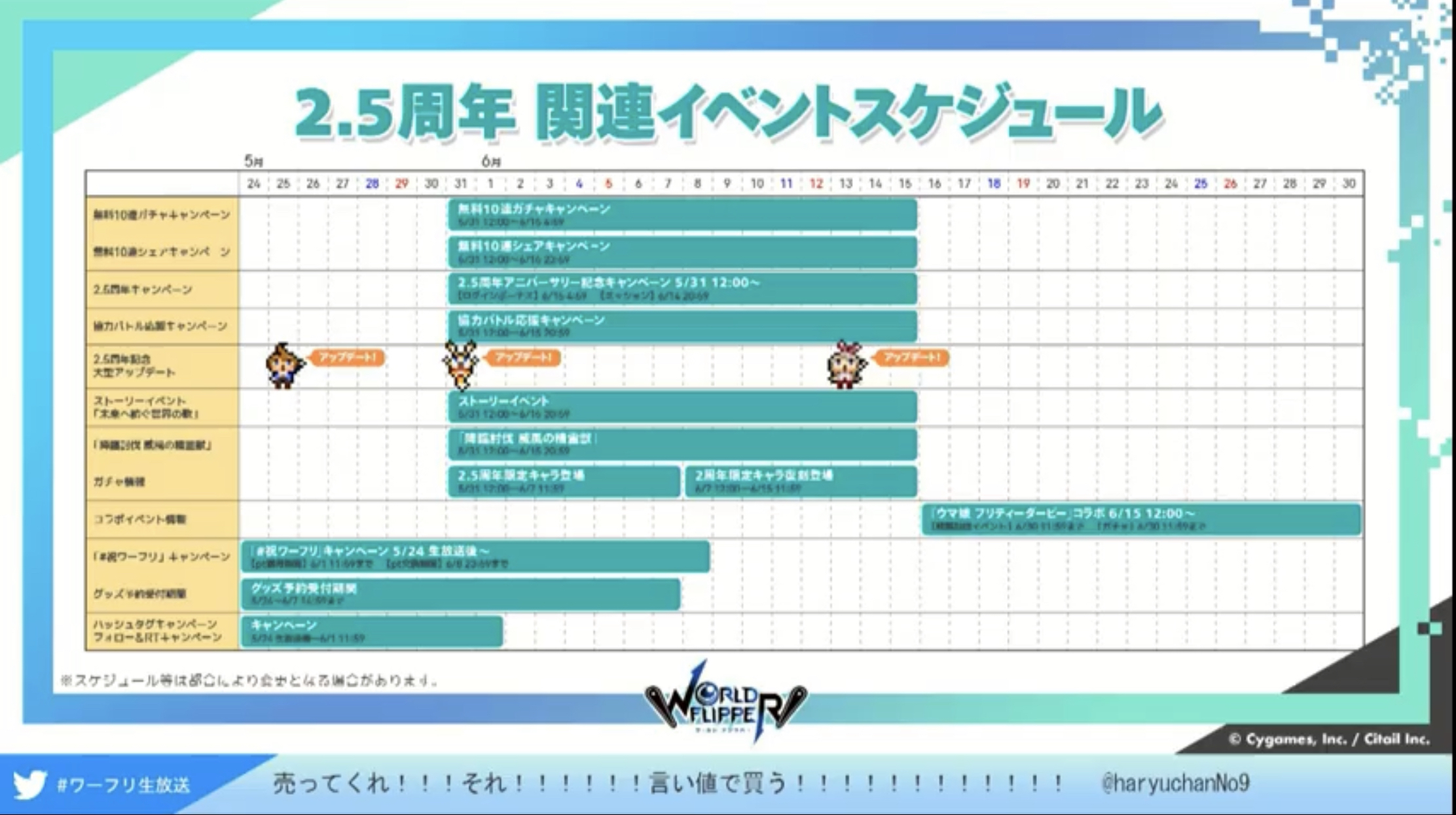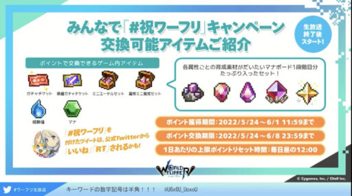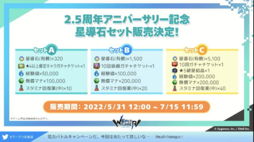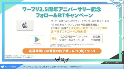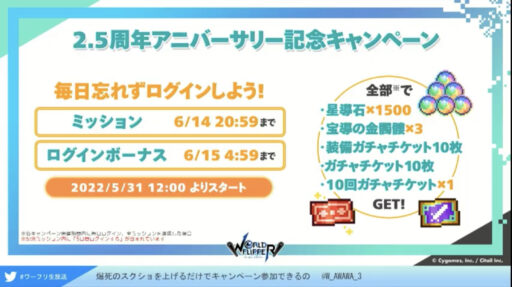ワーフリ2.5周年を記念した公式生放送が配信されました。