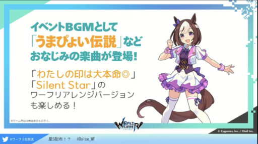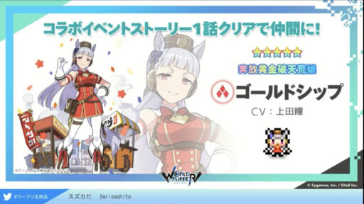 スペシャルウィークとサイレントスズカは恒常ガチャ、ゴールドシップは配布キャラとのこと(ゴルシだけ期間限定っぽい?)