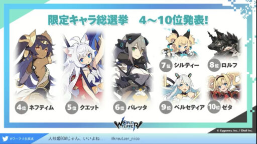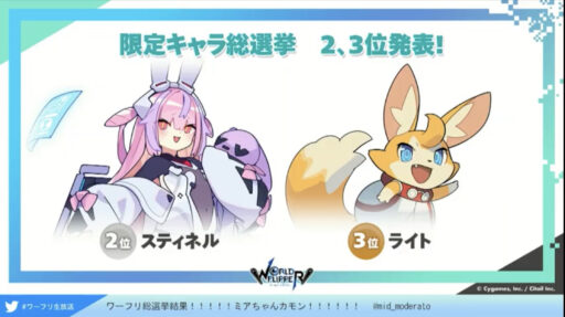 5/2~5/13の間でゲーム内の投票ページから好きなキャラ1体に投票ができます。多くの票を獲得したキャラは、年末年始以降に限定キャラとして登場!