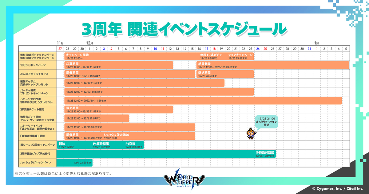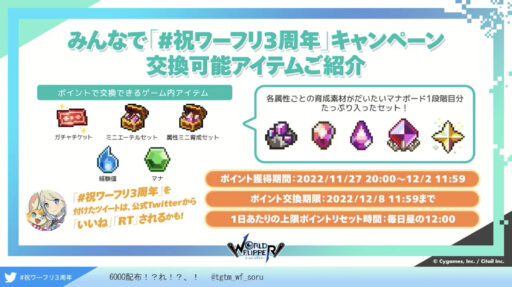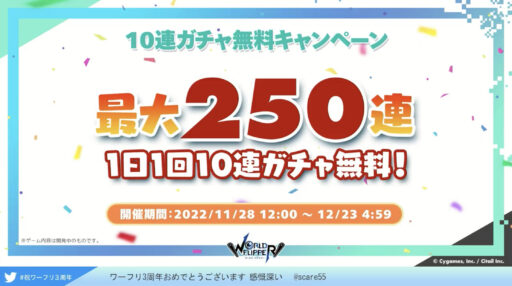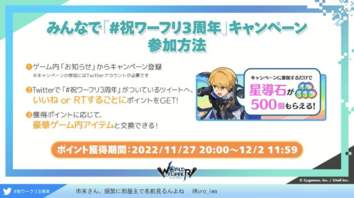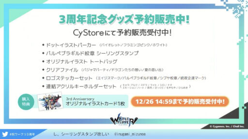 ワーフリ3周年を記念した公式生放送が配信されました。