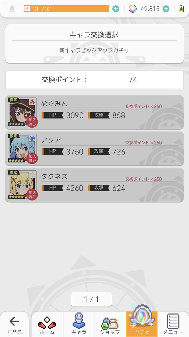 まあ確かにこのすば3体だけだとキツイかもね このまま初めて気長にすり抜け待ちってのもありだとは思う