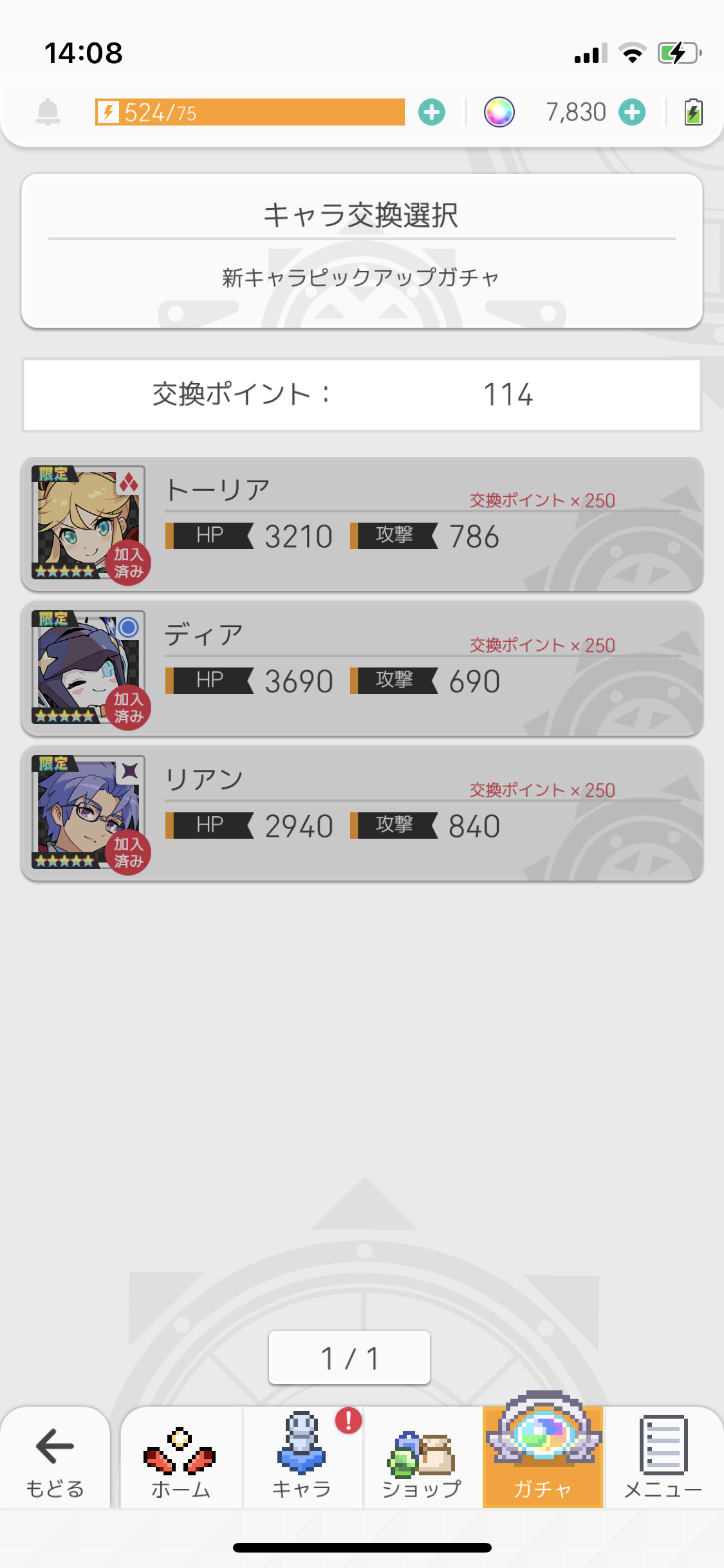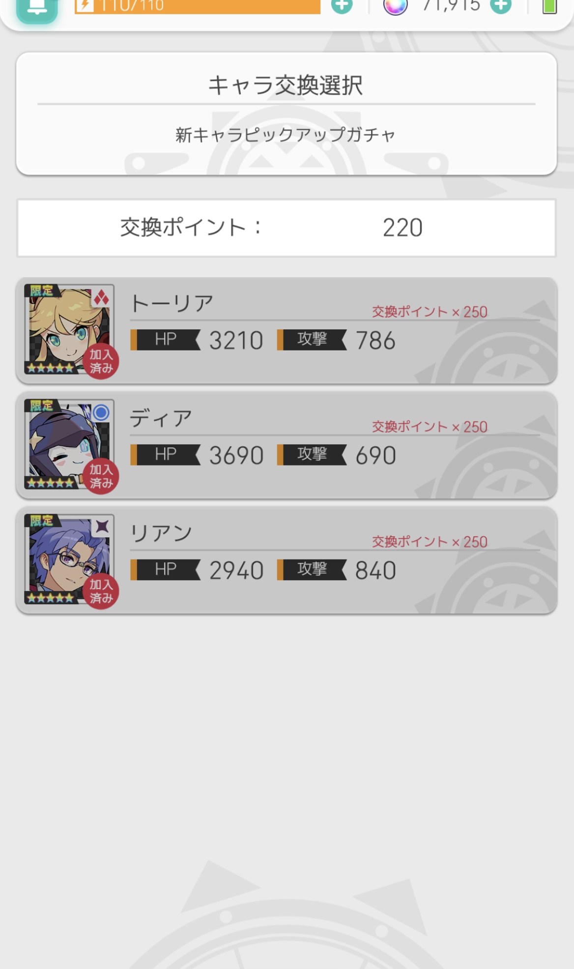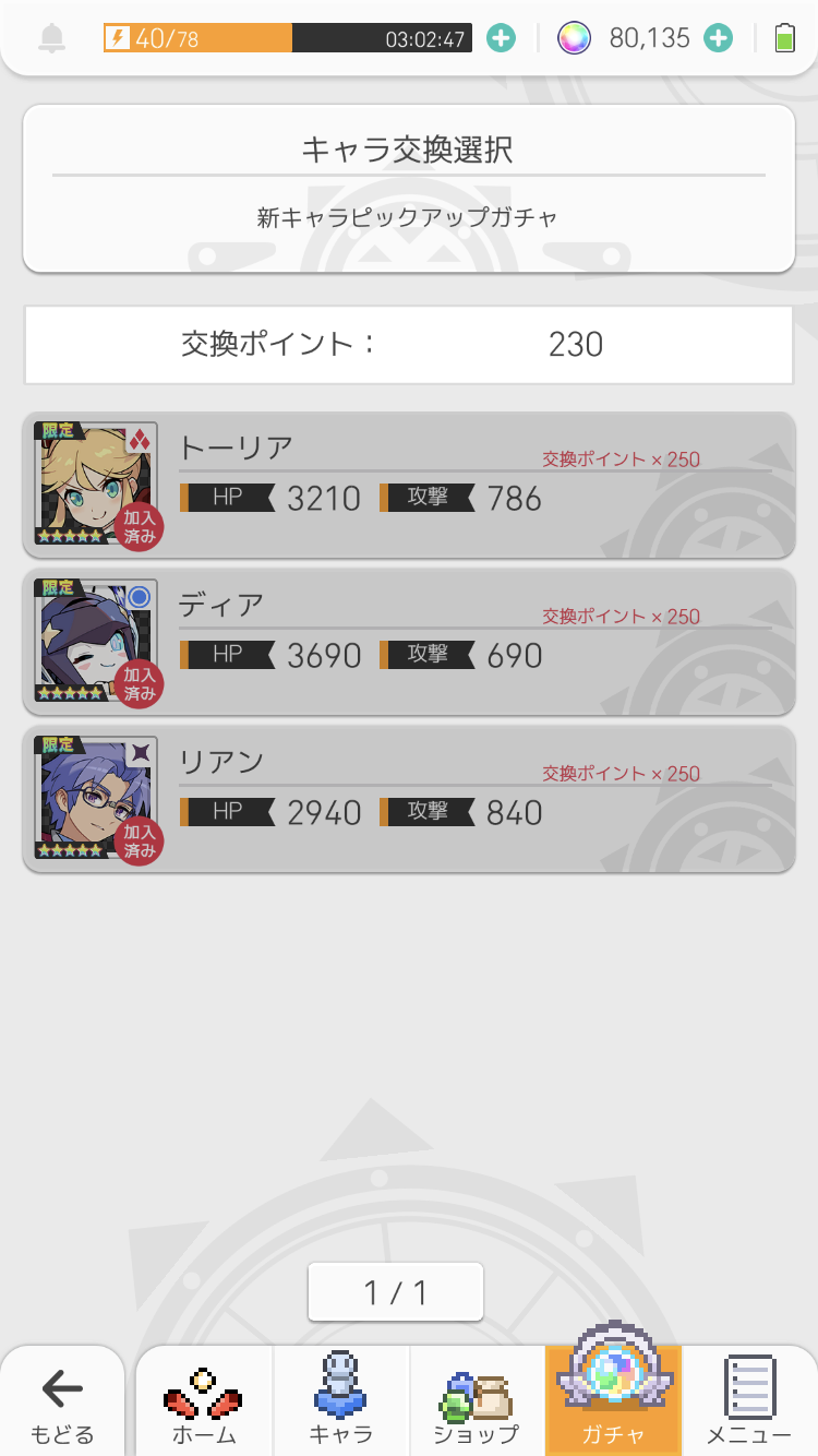 なんかこのゲームよく被るよね 天井でリアン4体引いたのにディアとトーリア引けなかったわ 天狗さんも何故か3体来たし・・・