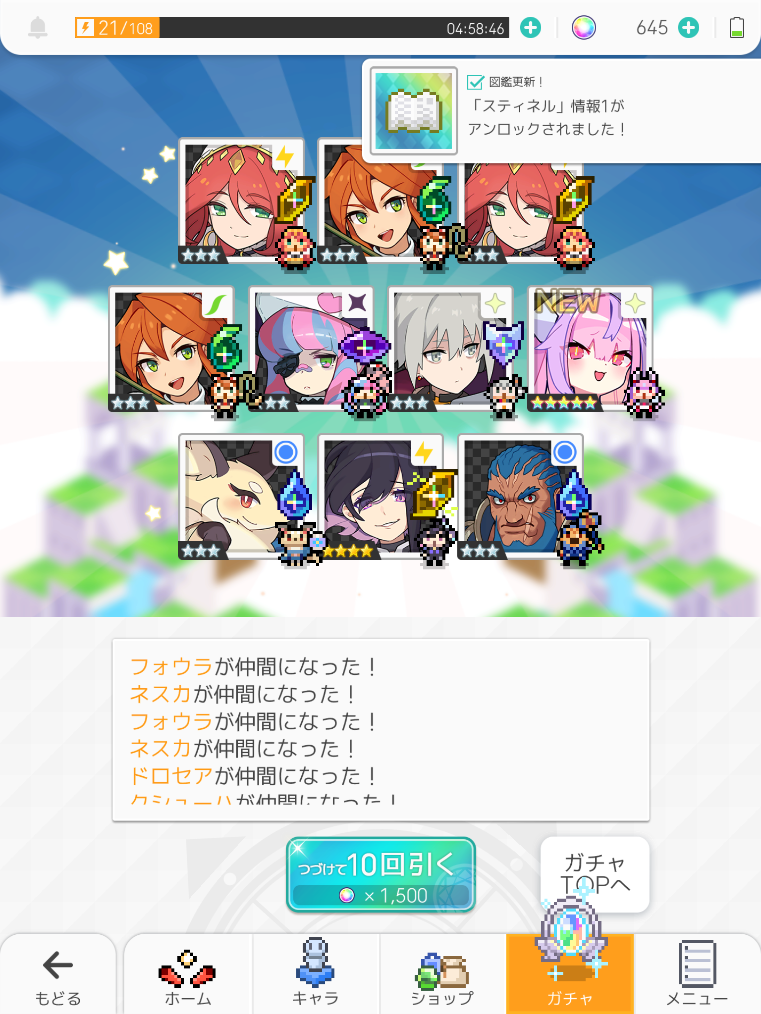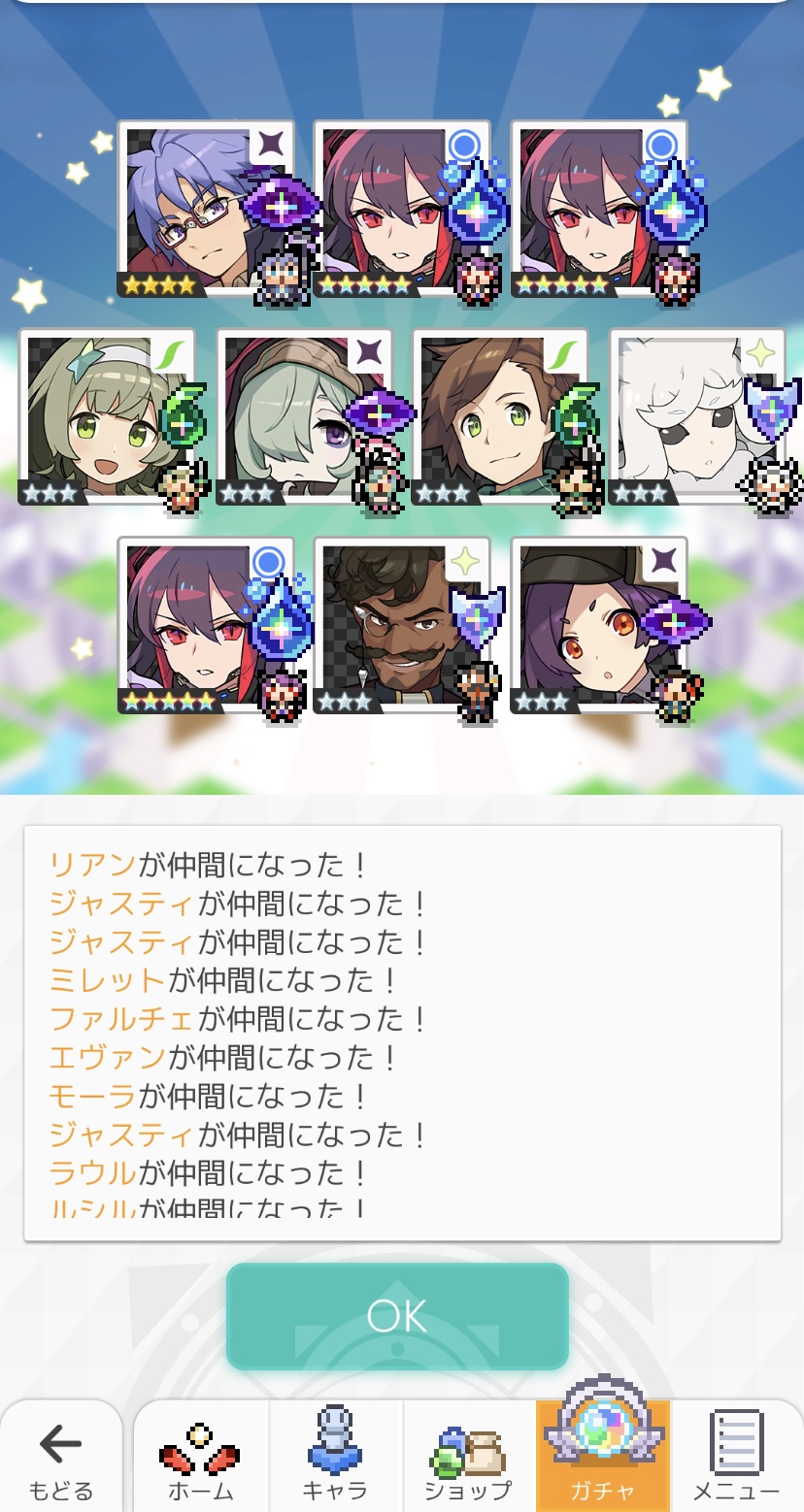 174回ガチャしてて、星5が5体しか来なかった…(内1体はスティネル、残り4体中2体は被り 悲C