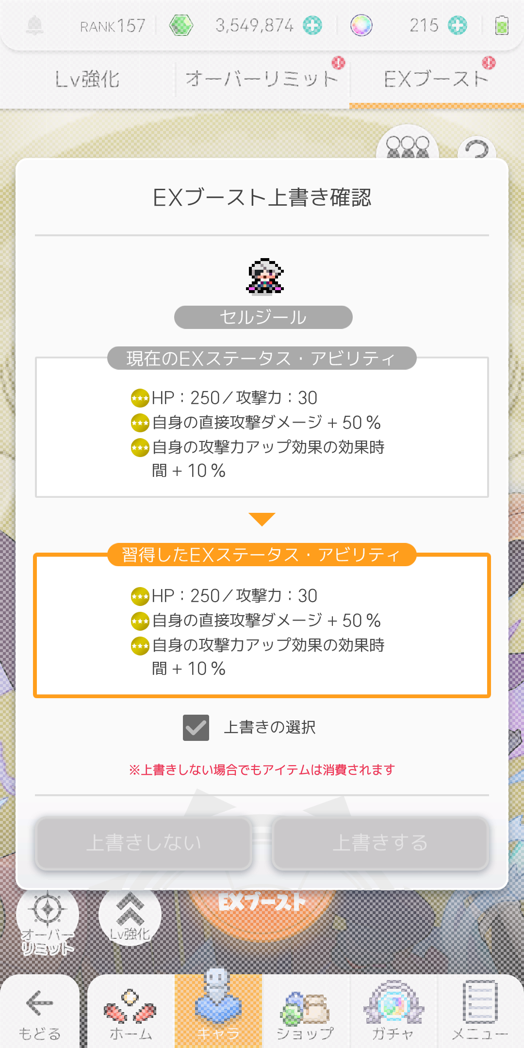 試しにと思って星3アルタライトで限定セルジールにEX付けてみたら 一発でスキダメ+40%出た! ありがてえ…
