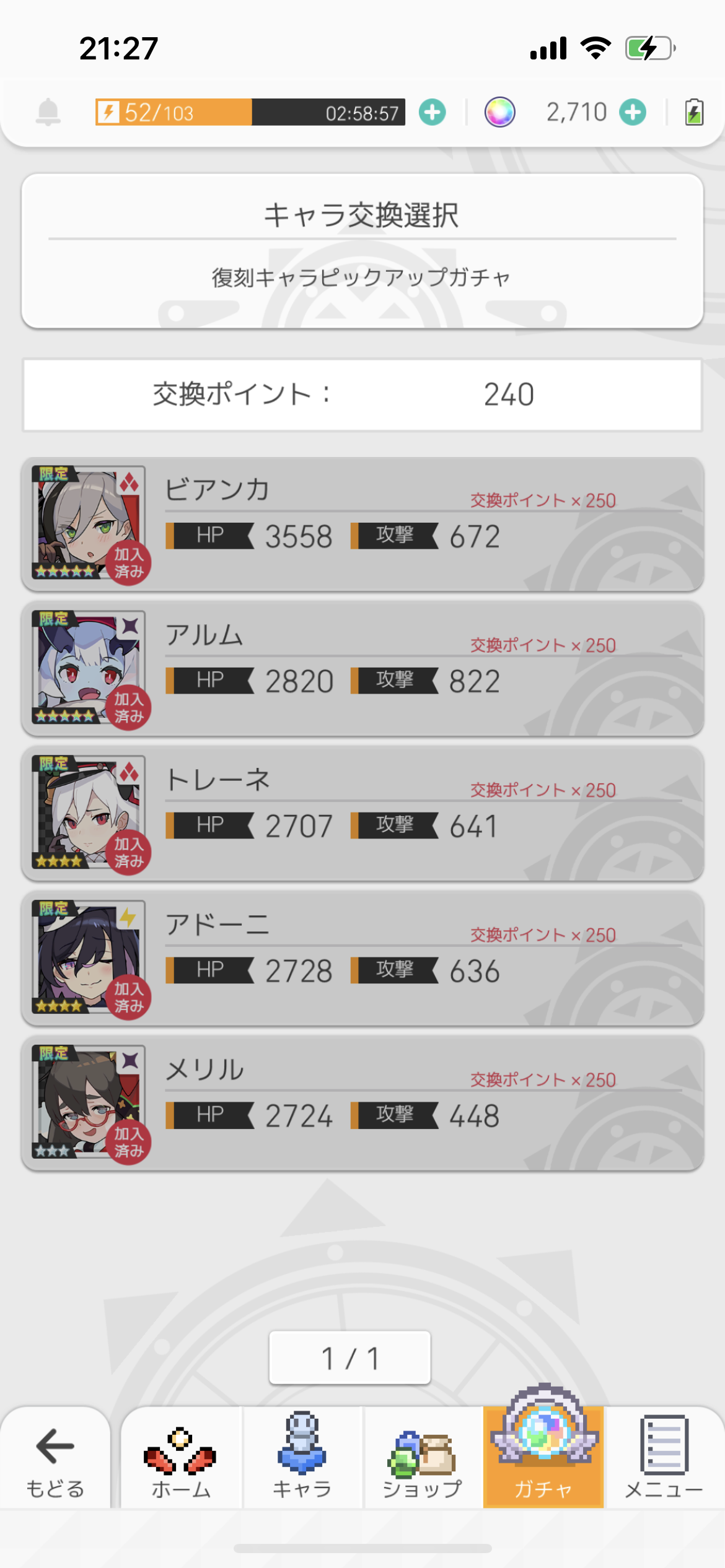 2つのアカウントで合計330連引いたのに、PU1人も当たらず…。星5も大して出てこんし、マジで引く度に思うけど確率バグってない?