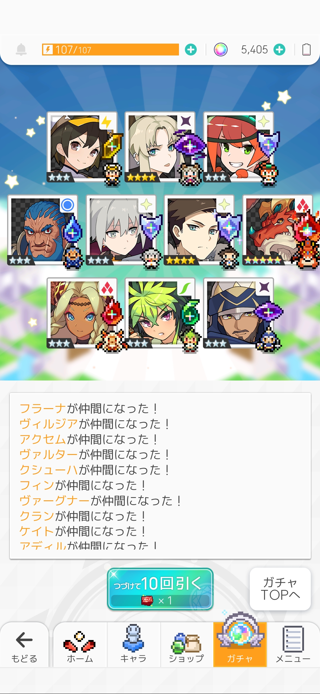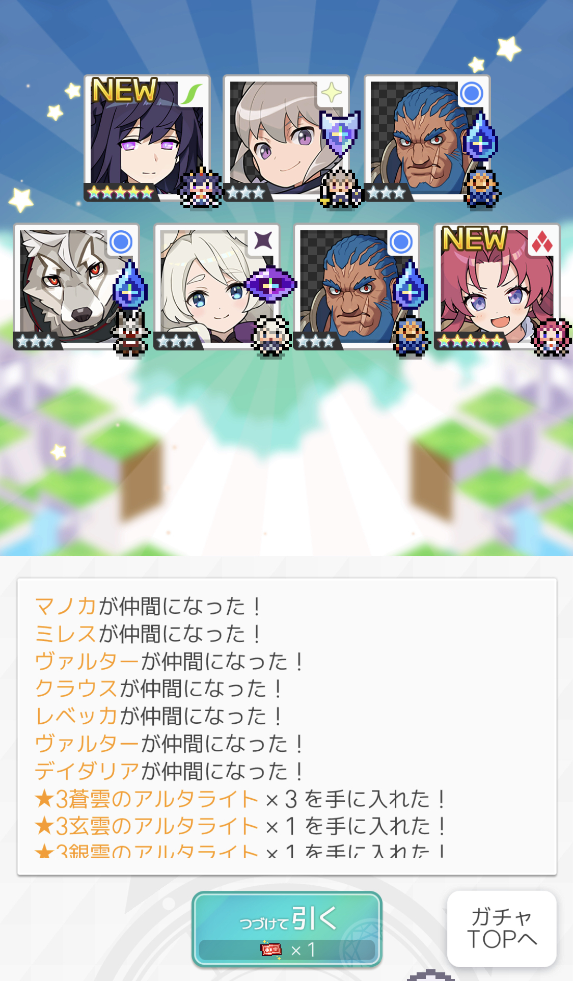 10連でシルティーとリンネが出たので つい粘ってしまった結果 120連目でキーラ3人出るという わけわからんことに