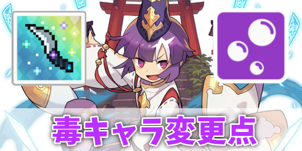 もともと毒ダメージは微々たるもので、毒ダメージを増加させてもあまり効果がなかったため、攻撃力upに代わったのは全てのキャラにとって上方修正と言えるでしょう。
