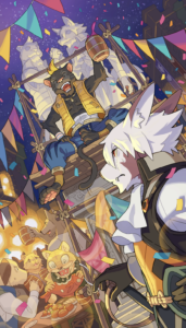 | 辿り着いた集落では、猫の獣人たちが生活していた。獣人たちはシロを見るなり白虎様の帰還だと盛り上がる。戸惑うアルクたち。そんな中、クローディアスと名乗る黒豹の獣人が声をかけてくるのだが、犬族の敵襲によって遮られる。アルクたちは、迎撃の準備をする | |