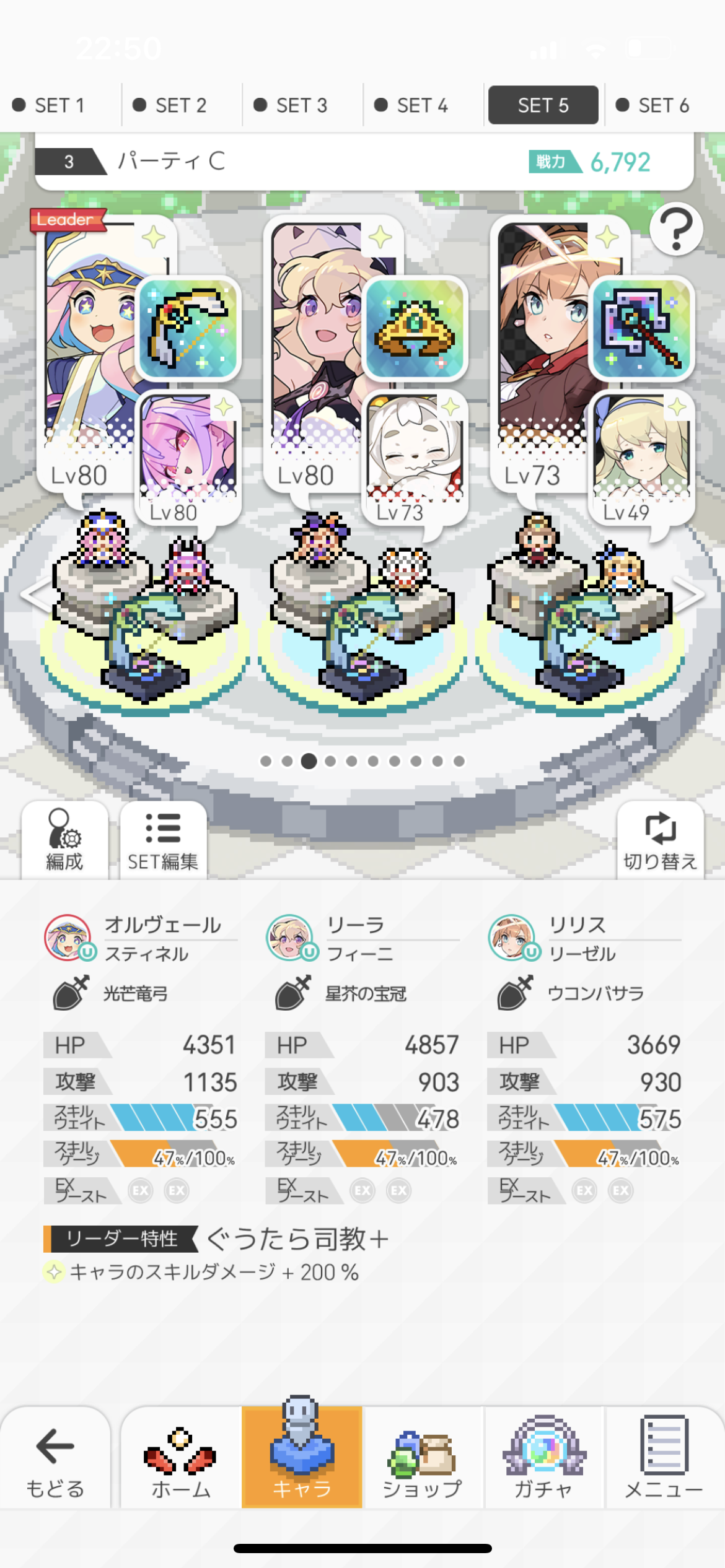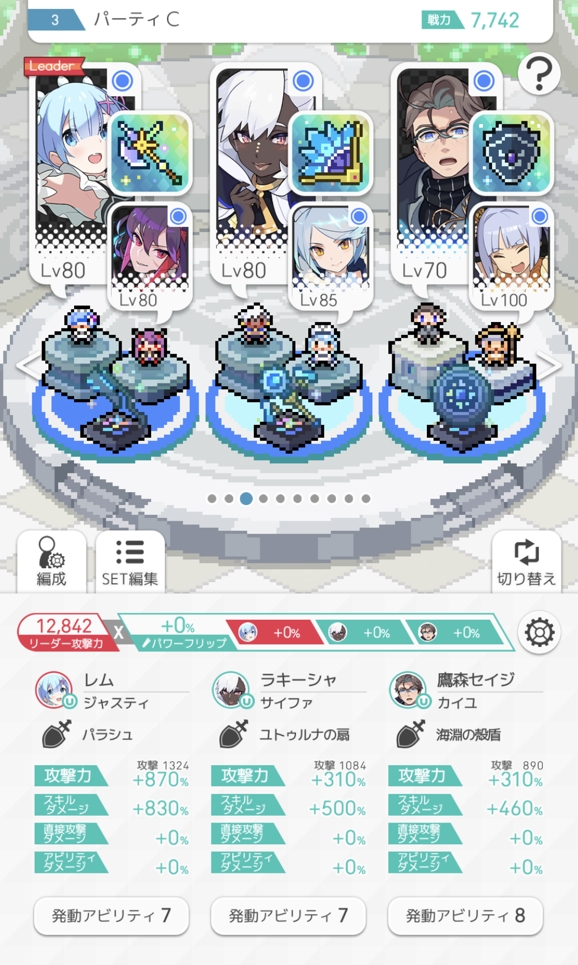 現在の編成とキャラ所持はこんな感じです