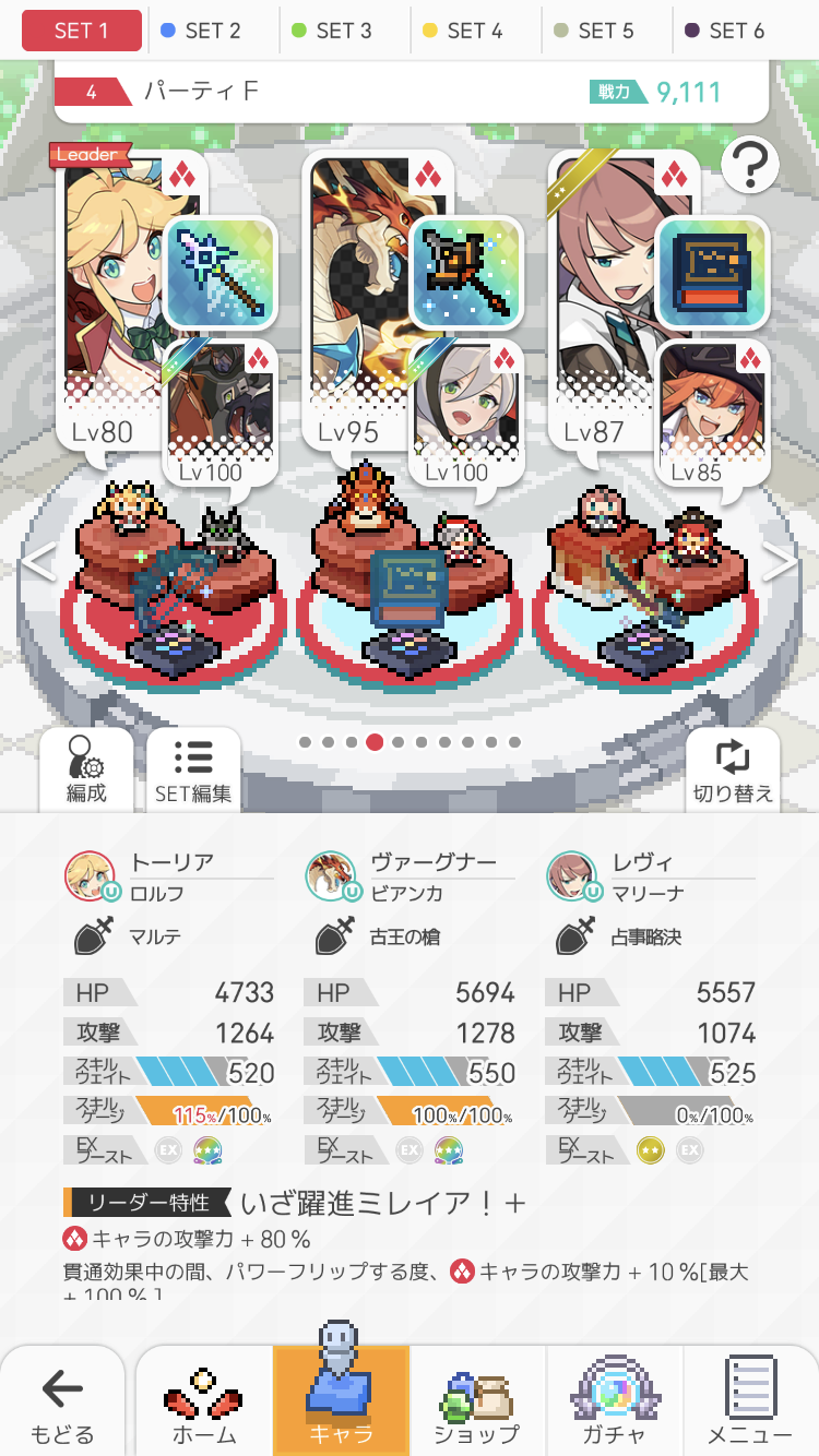 マルテ持ってるのに貫通要員がトーリアだけでさらにロルフとマリーナが後ろにいること、ヴァーグナーとレヴィを採用してるのに古王の拳・槍を装備していない、この2点が気になるので