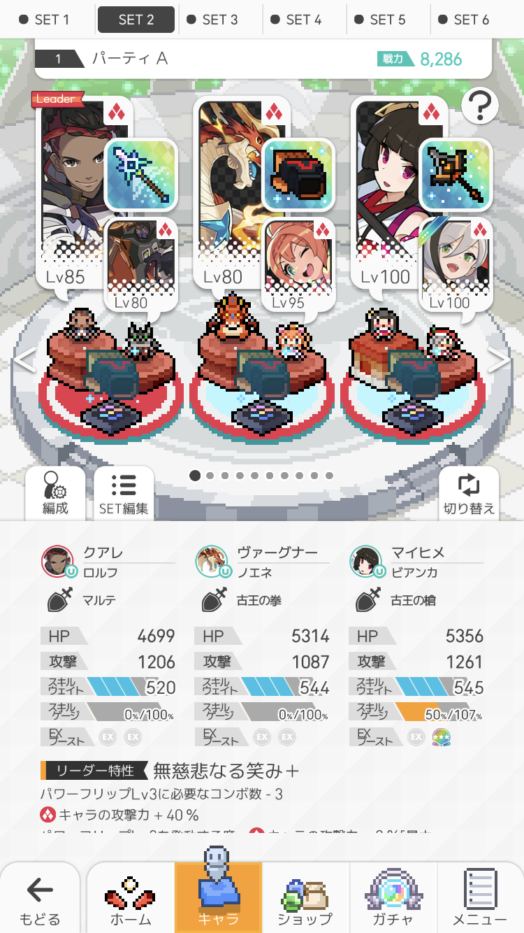 欲を言えば追加の貫通要員としてマイヒメorミルミナ、参戦バフ+回復が出来るジンが居ればよかったけどいないのなら仕方ない。