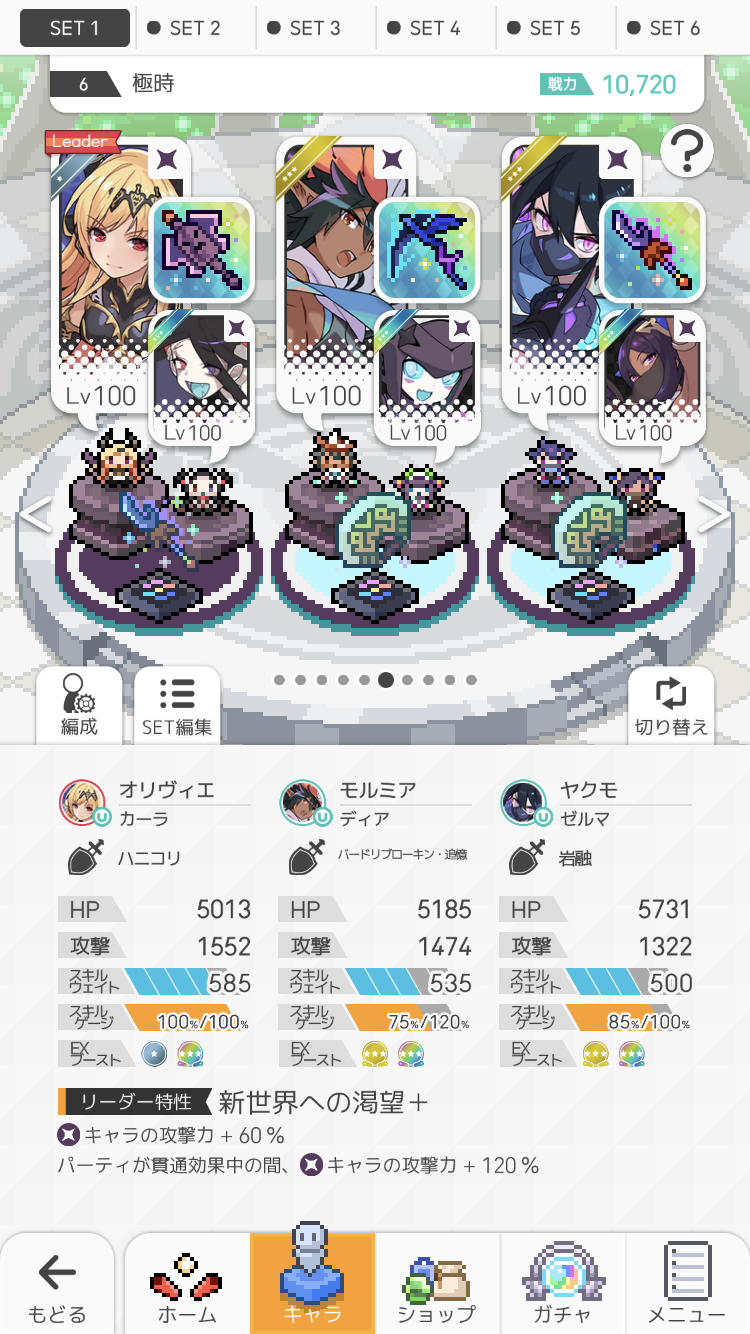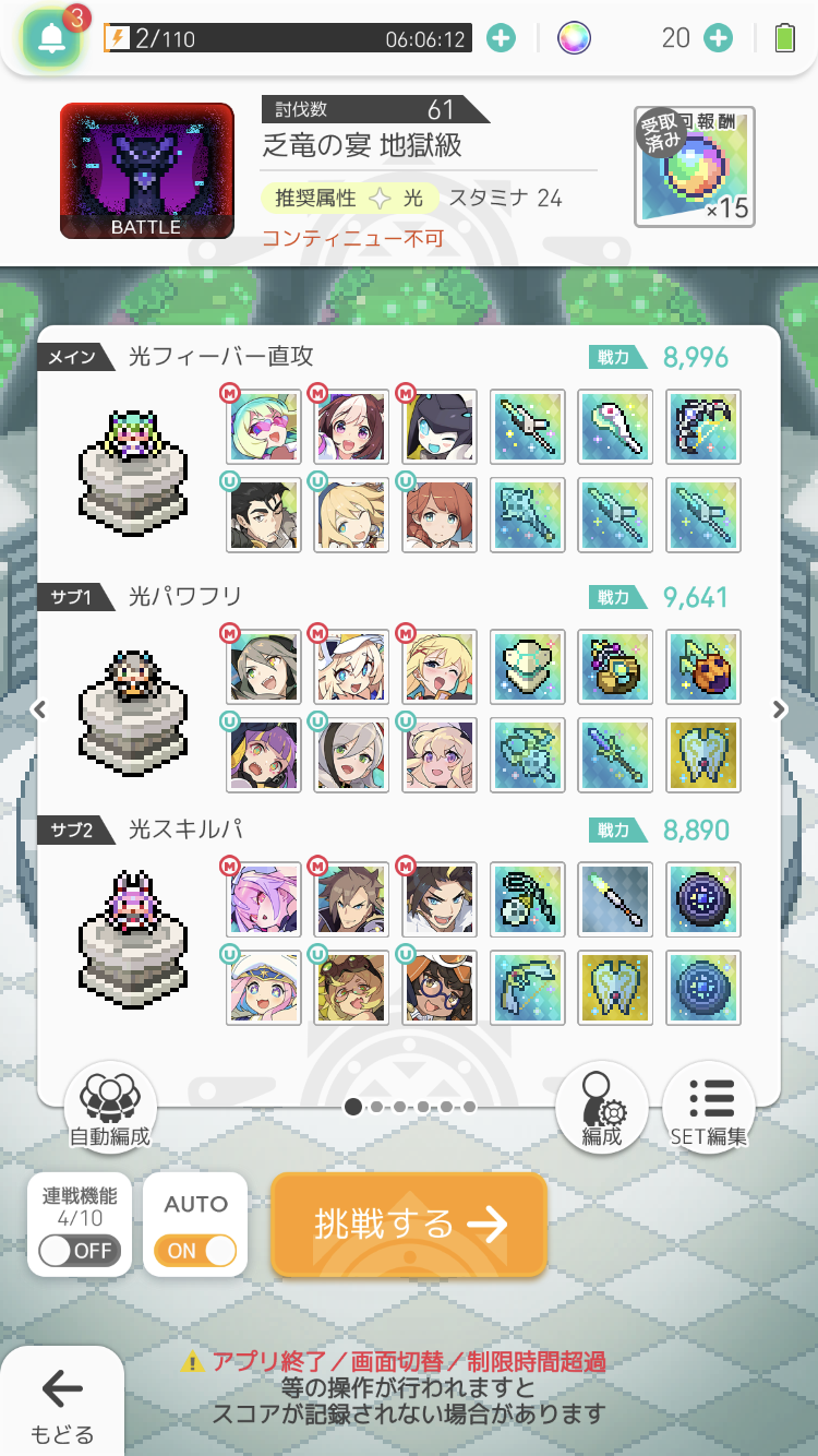 敵の攻撃が厳しい時はリュノンをピシカかアニバアルクに、ミルミナをマイヒメに変更してOK