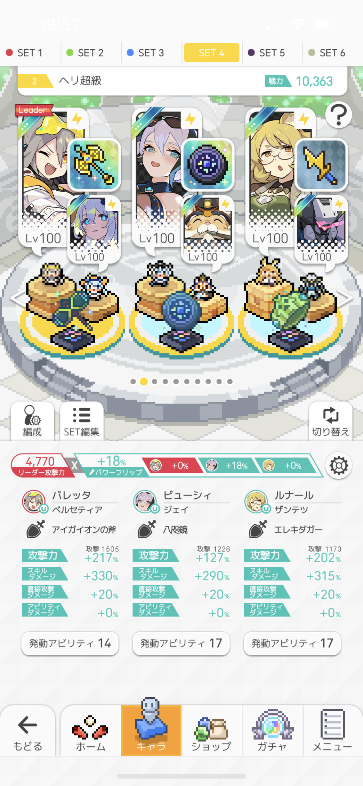 ユトゥルナ(水染め編成限定)→ブラウガンド→ゴールドレーク→ハニランチャー(染め限定)→鏡