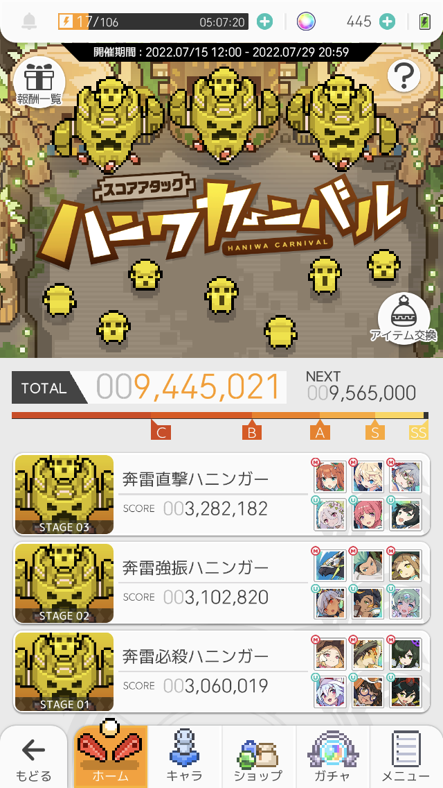 この2人がおらず雷剣パワフリや火貫通各種が組めず、マルテを使う機会がオロチにおける闇パワフリくらいしか無いのですが、この闇パワフリでもハニコリで代用可能ということで、パラシュが良いと判断しました。