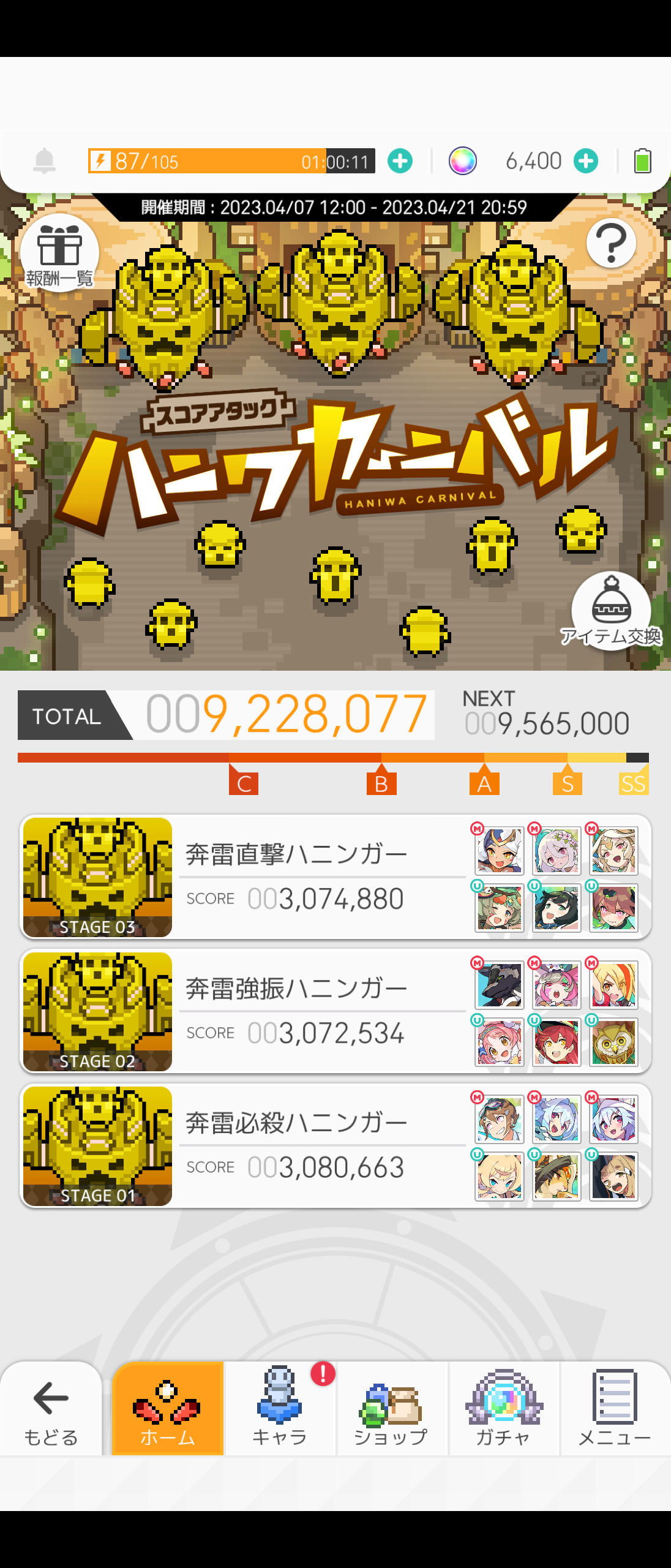 ハニワカーニバルで3つとも超級をクリアすることができず、パーティ相談させてください