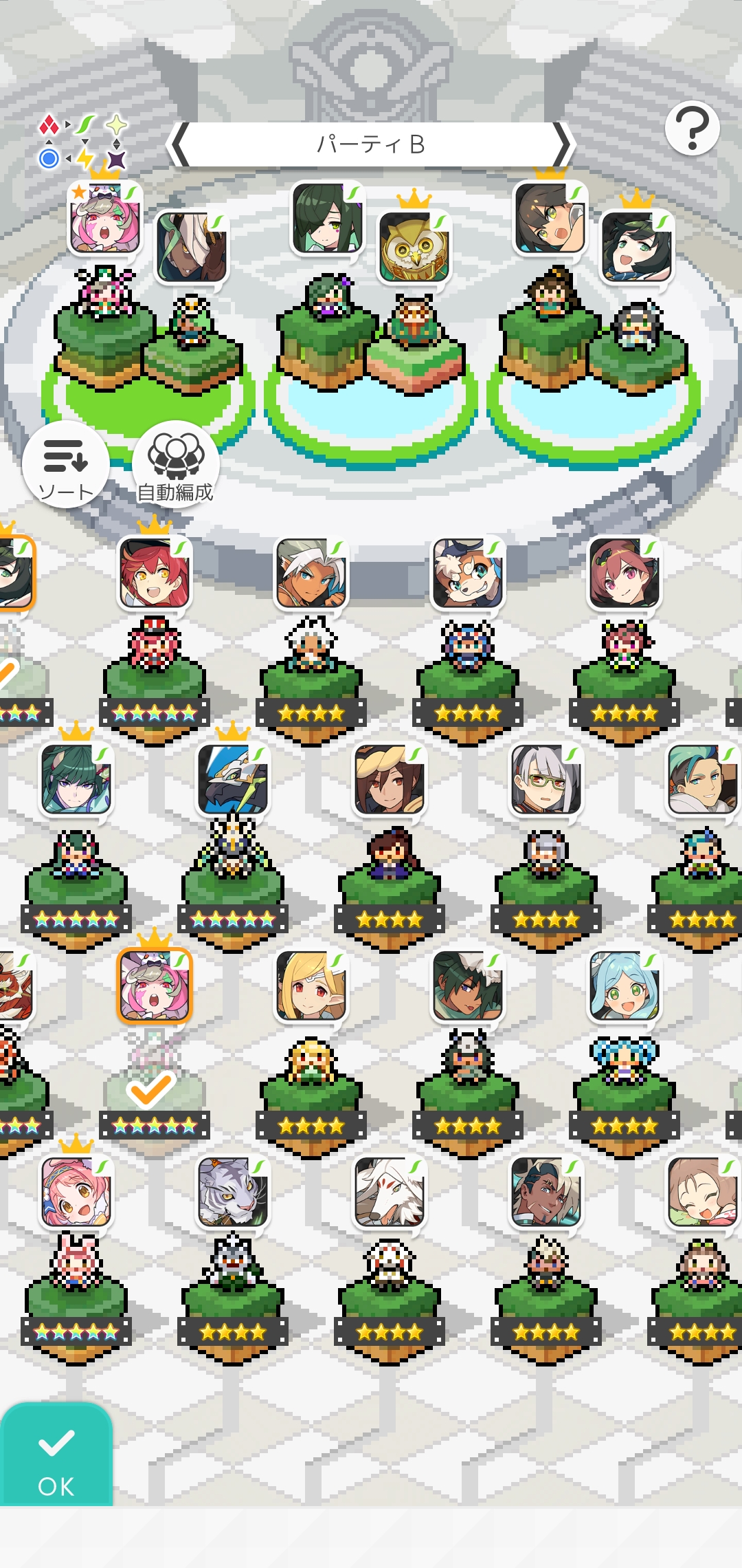 パーティを相談をする場合は、所持率チェッカーを使用して全ての所持キャラ・装備にチェックをしてください。「行きたいクエスト」「試行錯誤中のパーティ」を載せると、より具体的な回答が貰えるようになります。