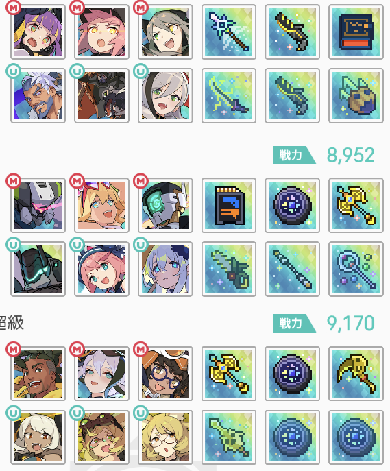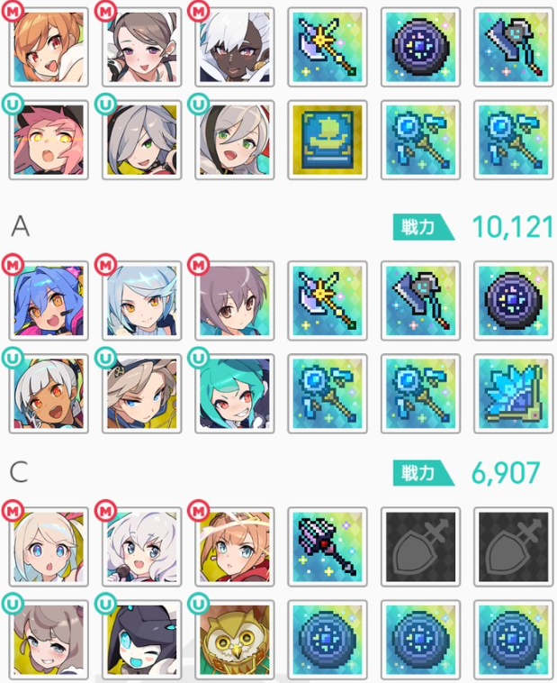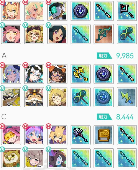 | リーダー | 武器 | メイン | 武器 | メイン | 武器 | |||